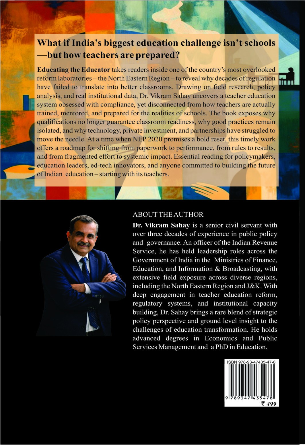 Educating the Educator takes readers inside one of the country’s most overlooked reform laboratories – the North Eastern Region – to reveal why decades of regulation have failed to translate into better classrooms. Drawing on field research, policy analysis, and real institutional data, Dr. Vikram Sahay uncovers a teacher education system obsessed with compliance, yet disconnected from how teachers are actually trained, mentored, and prepared for the realities of schools. The book exposes why qualifications no longer guarantee classroom readiness, why good practices remain isolated, and why technology, private investment, and partnerships have struggled to move the needle. At a time when NEP 2020 promises a bold reset, this timely work offers a roadmap for shifting from paperwork to performance, from rules to results, and from fragmented effort to systemic impact. Essential reading for policymakers, education leaders, ed-tech innovators, and anyone committed to building the future of Indian education – starting with its teachers.